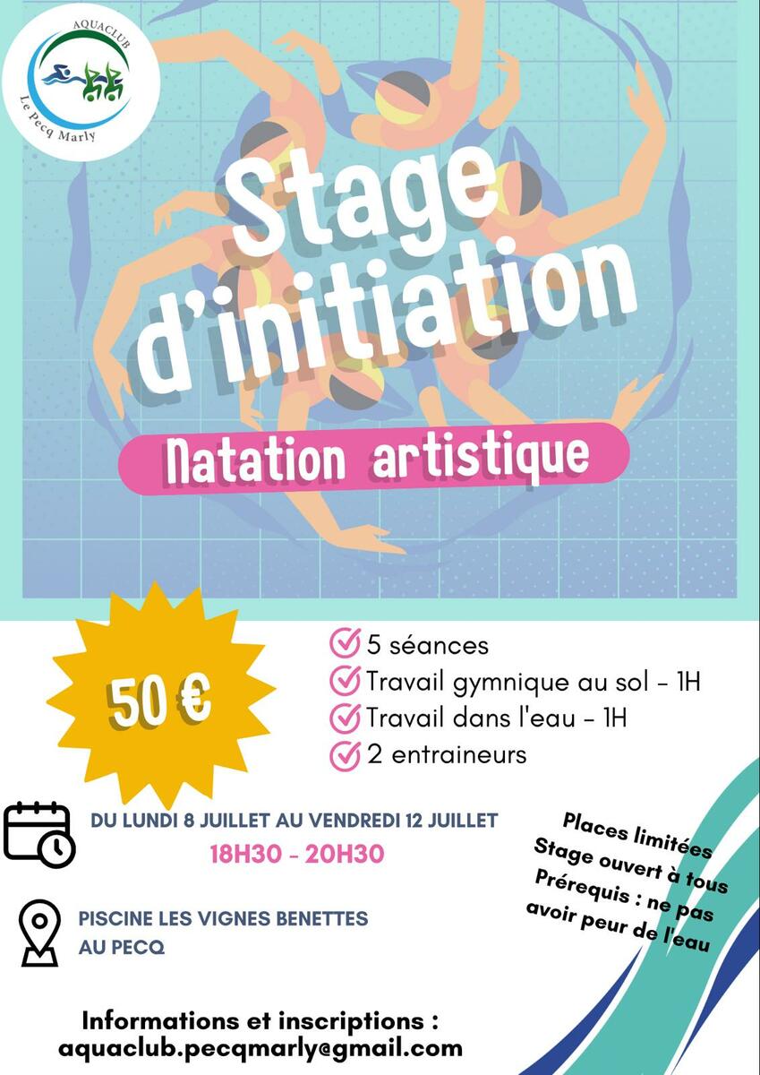Un stage d’initiation destiné à des enfants/adultes qui veulent découvrir la natation artistique aura lieu du lundi 8 au vendredi 12 juillet à la piscine des vignes benettes au Pecq.